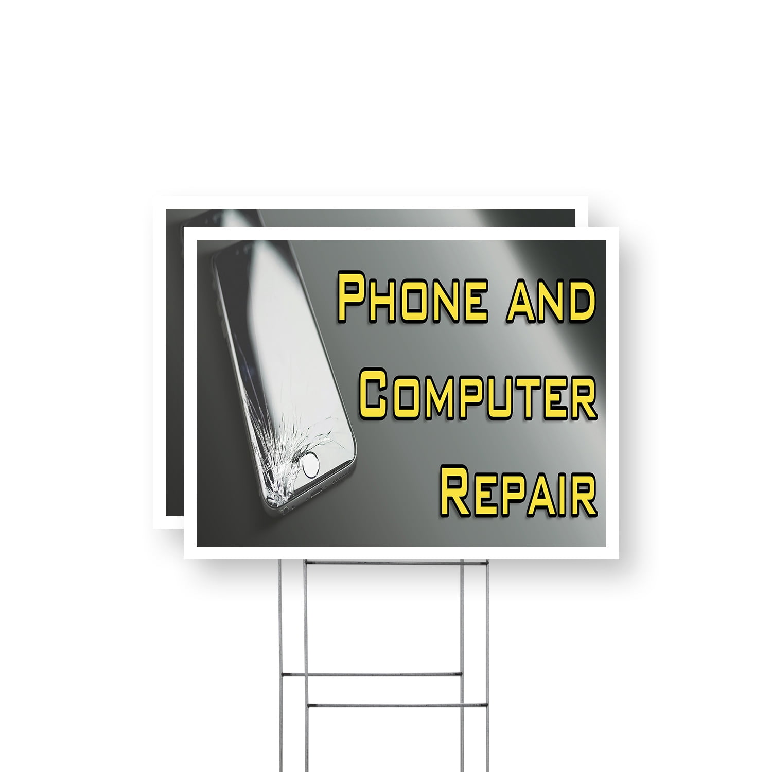 Phone and Computer Repair Yard Sign 2 Pack of 12 Inch x 16 Inch Double ...