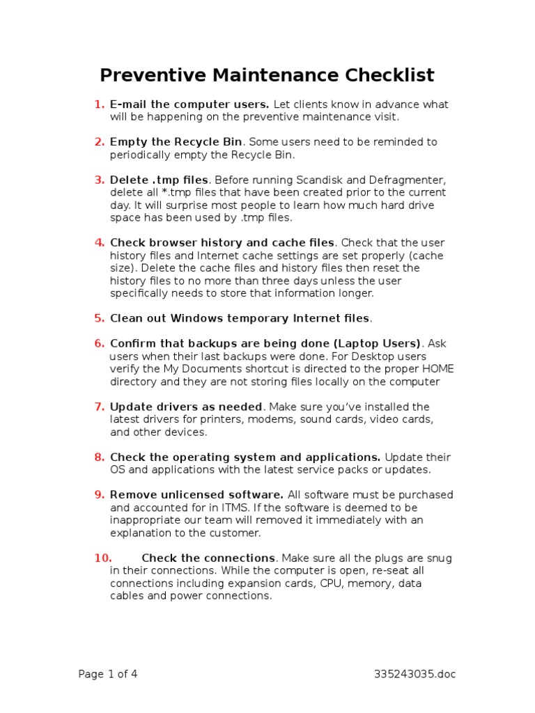 Computer Maintenance List at Lloyd Sutton blog