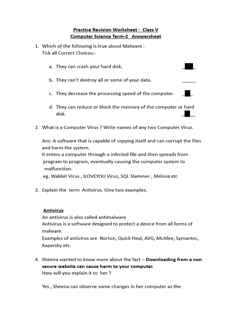 Computer Virus Worksheet For Class 7 at Brock Calvo blog