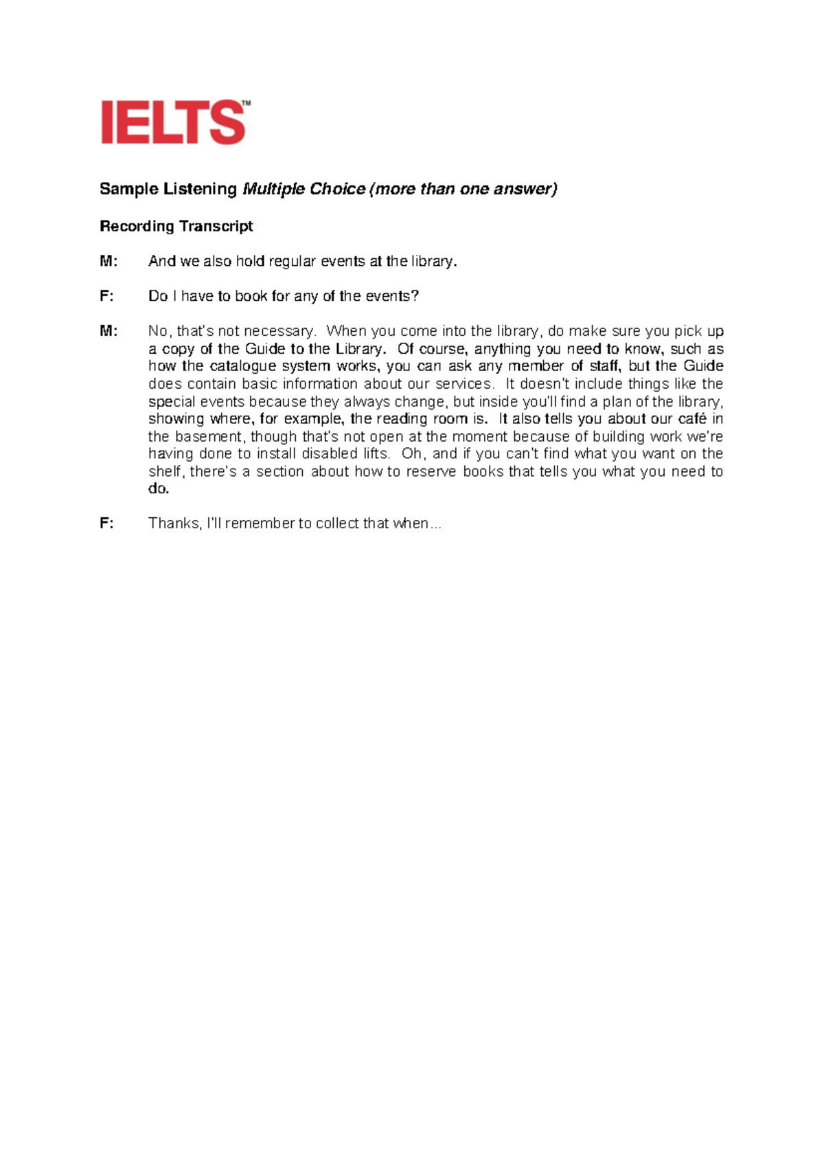 IELTS Listening: Computer-Delivered MCQ Transcript & Answer Key - Studocu