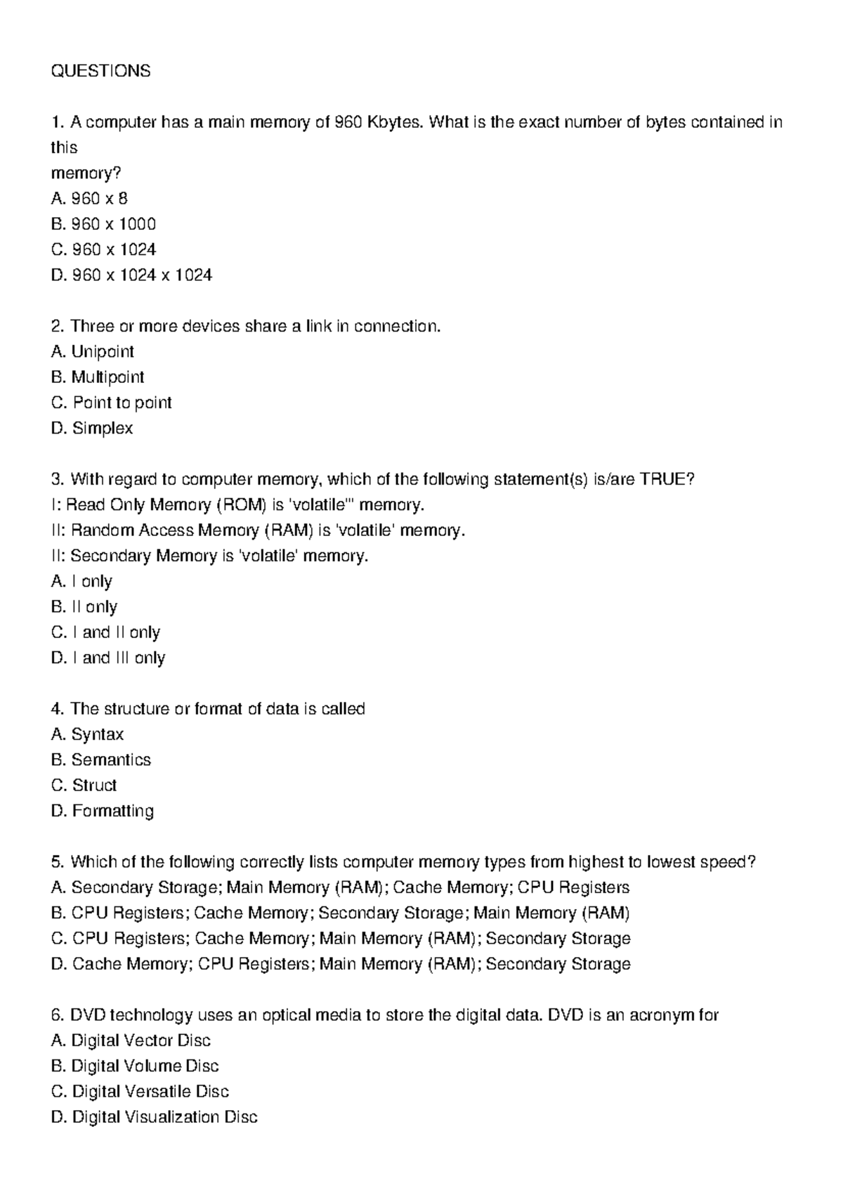 Computer memory questions and answers - Studocu