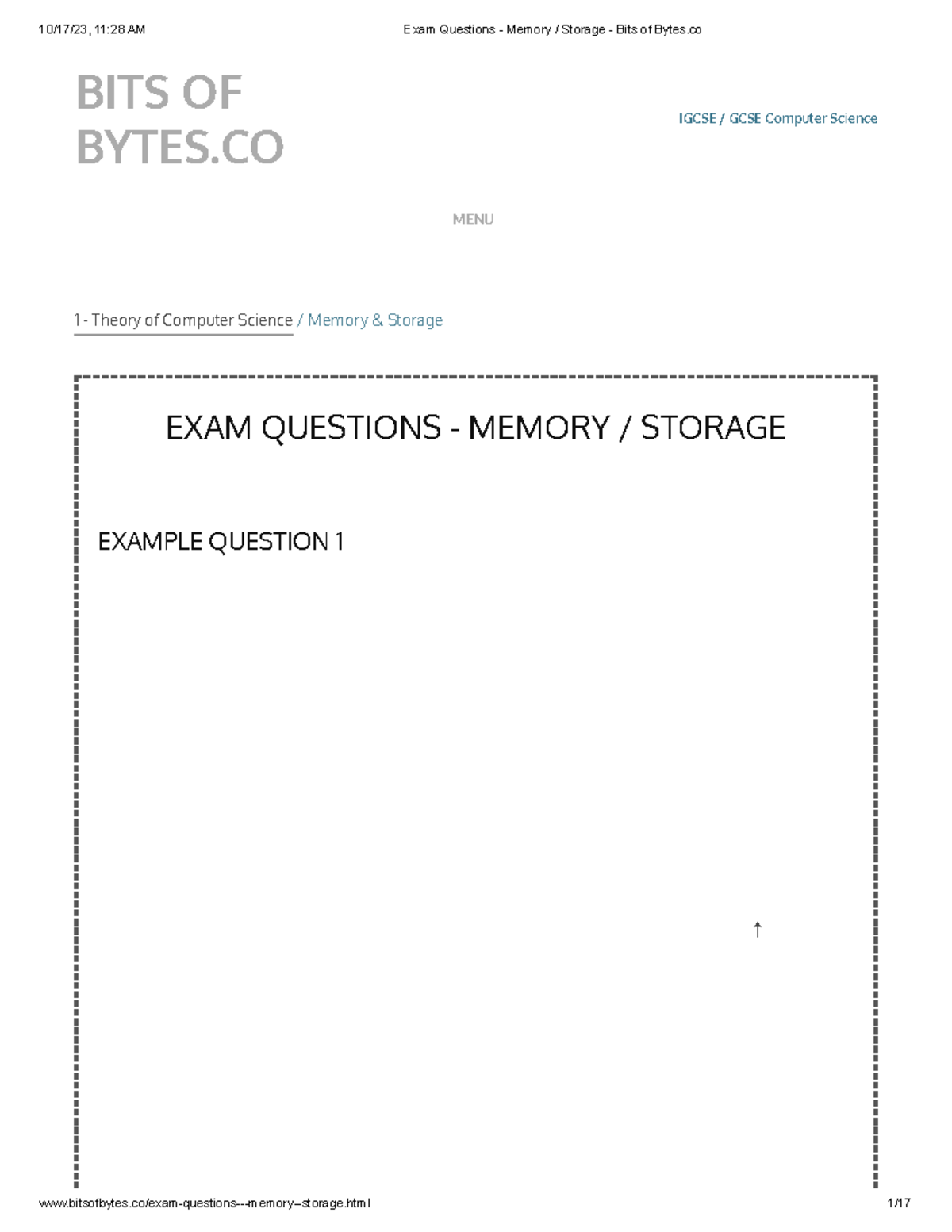 Exam Questions - Memory Storage - Bits of Bytes - 1 - Theory of ...