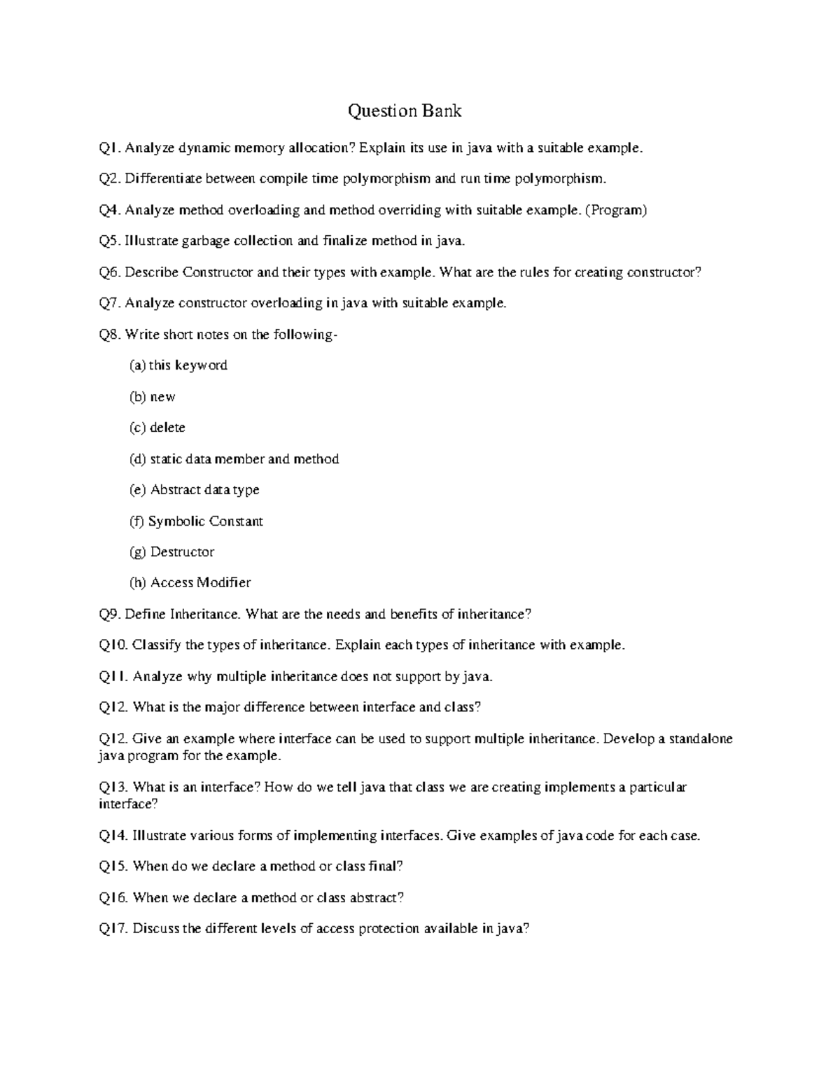 Question Bank-1 - Analyze dynamic memory allocation? Explain its use in ...