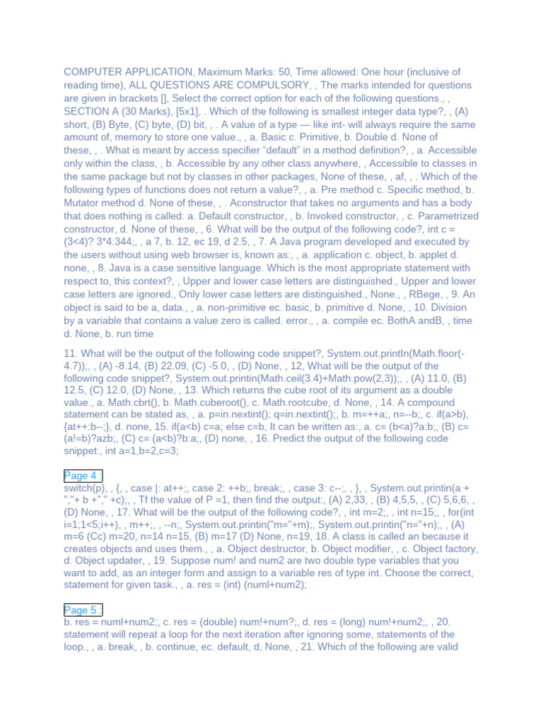 Computer Applications Exam Questions | PDF | Data Type | Integer ...
