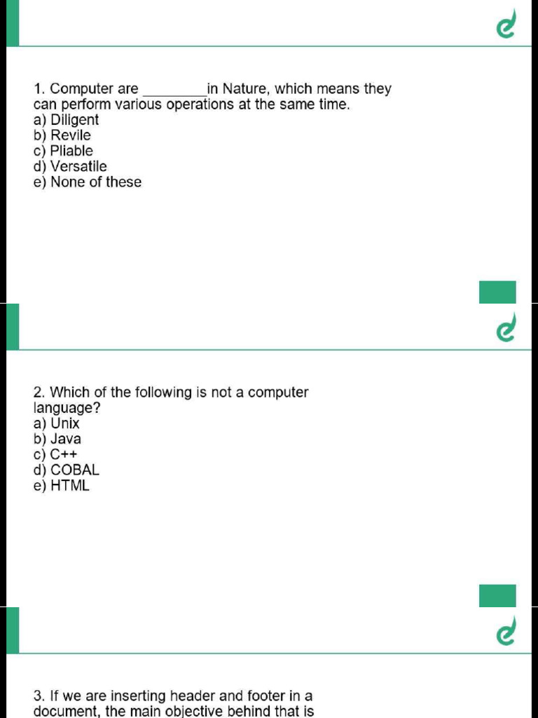 Here are some questions related to computer applications, likely focusing..