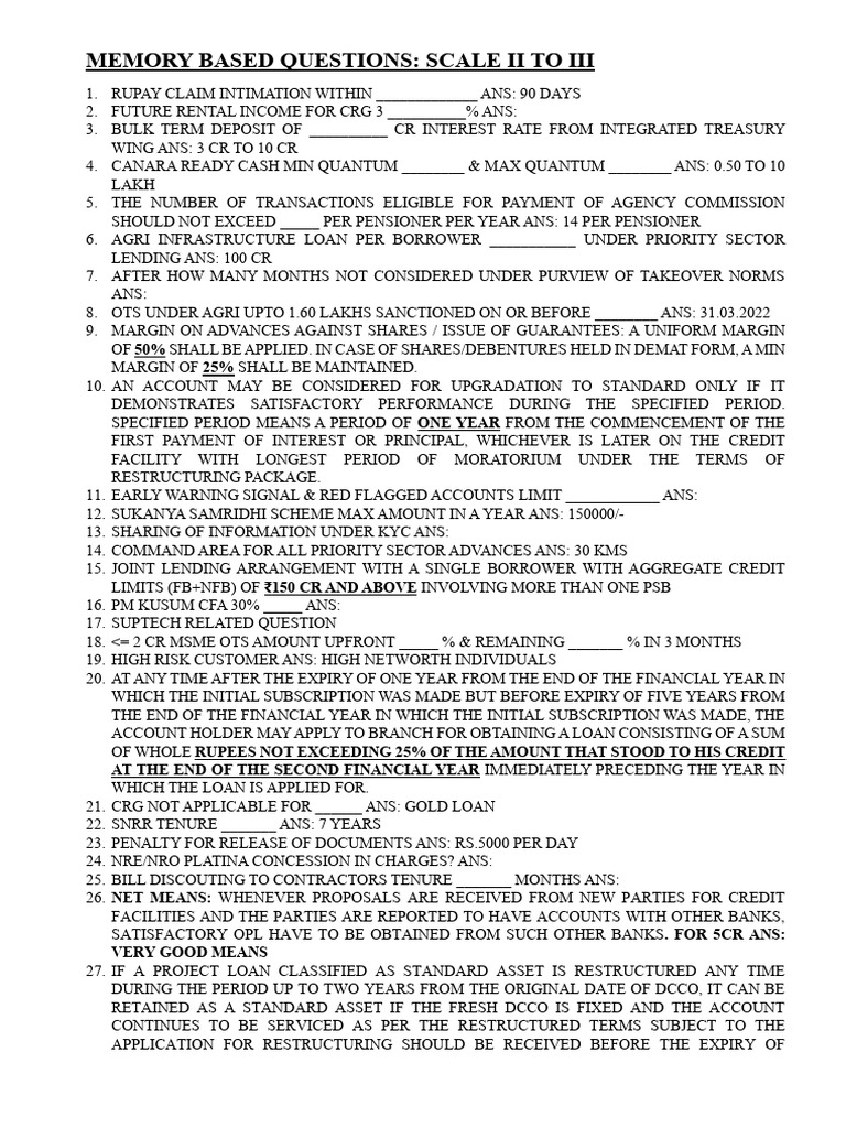 Memory-Based Questions for Bank Exams | PDF | Banks | Interest