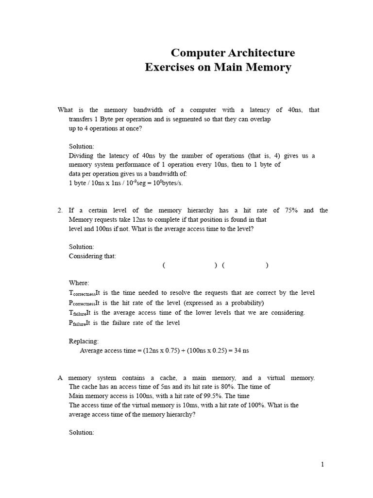 Computer Architecture - Memory - Answers | PDF | Computer Data Storage ...