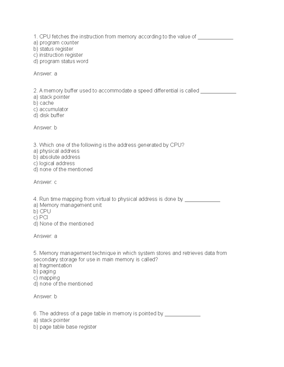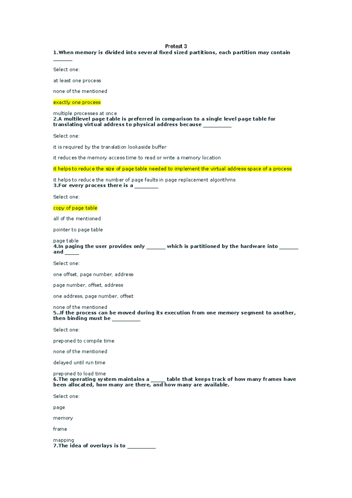 Pretest Questions for Operating System 3 - Memory Management Concepts ...
