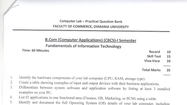 B.Com (Computer Applications) I Sem. FIT Practical Question Bank - Studocu