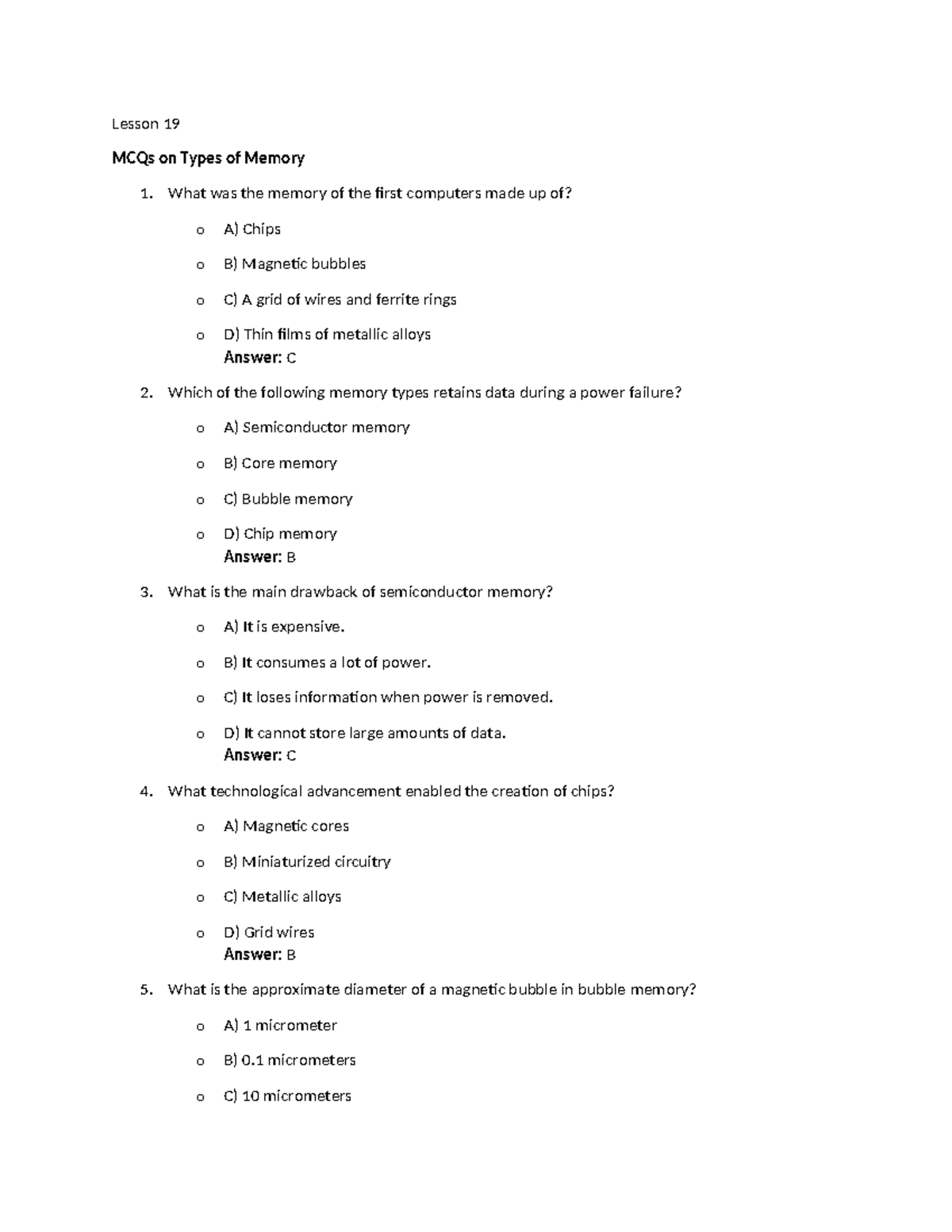 Lesson 19 - Lesson 19 MCQs on Types of Memory 1. What was the memory of ...