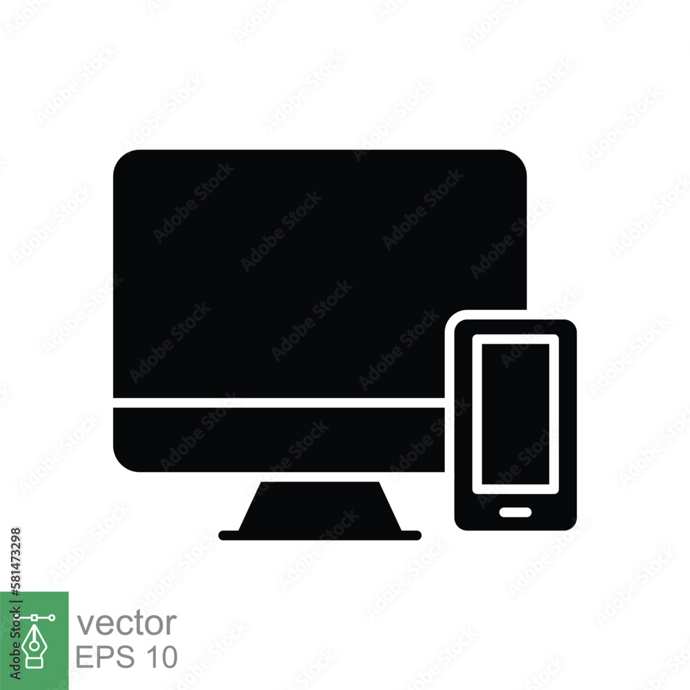 Computer and mobile phone glyph icon. Simple solid style. Desktop ...