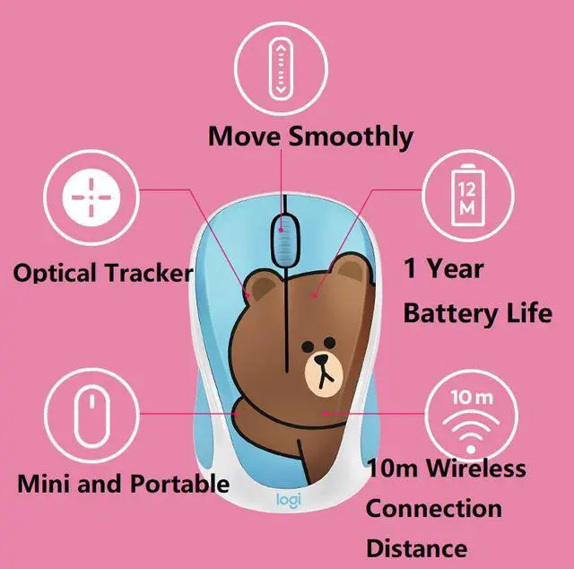 Logitech Line Friends Theme Ergonomic Design, Cute Exterior 2.4GHz 10m ...