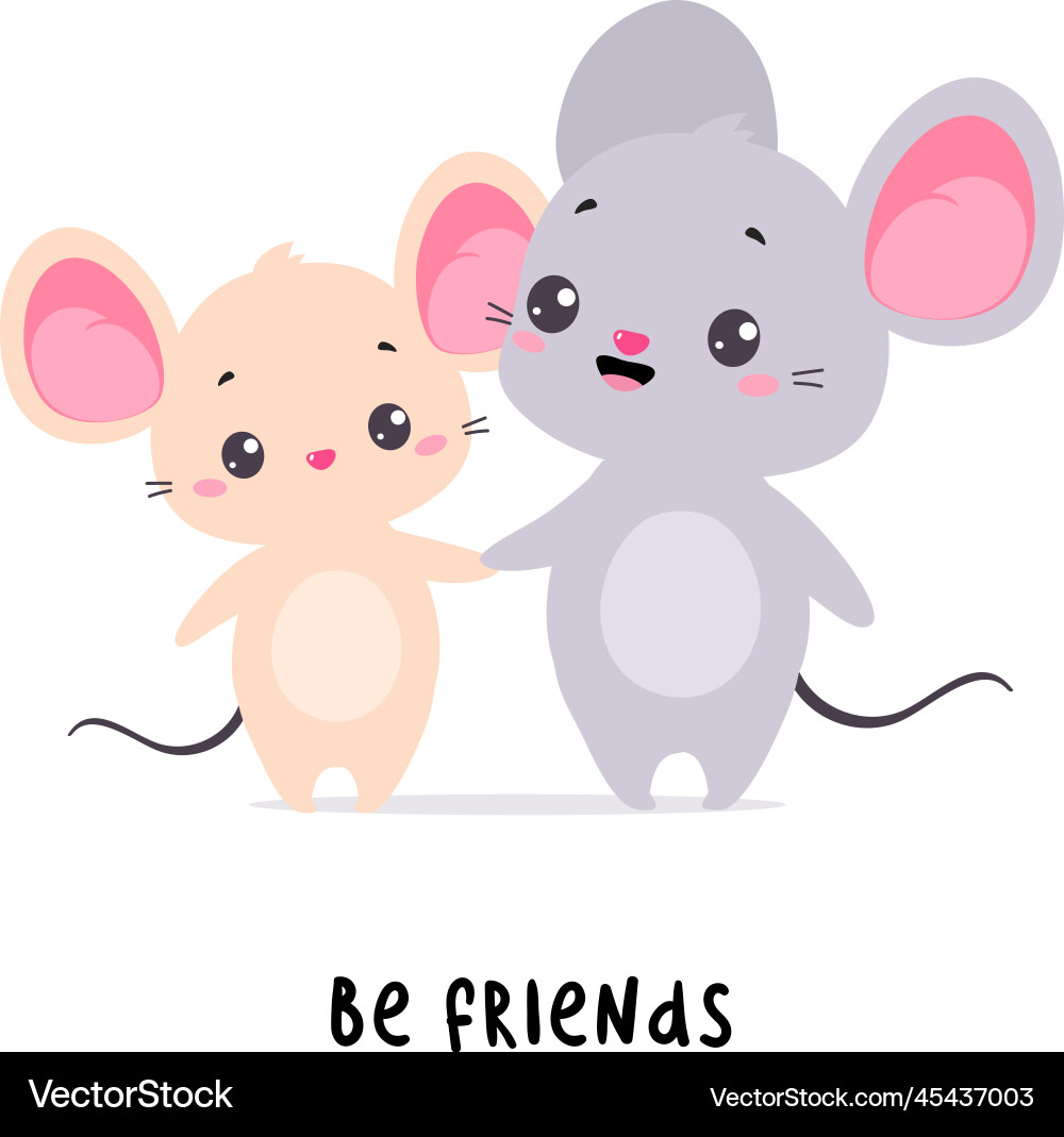 Little mouse friends holding paws demonstrating Vector Image