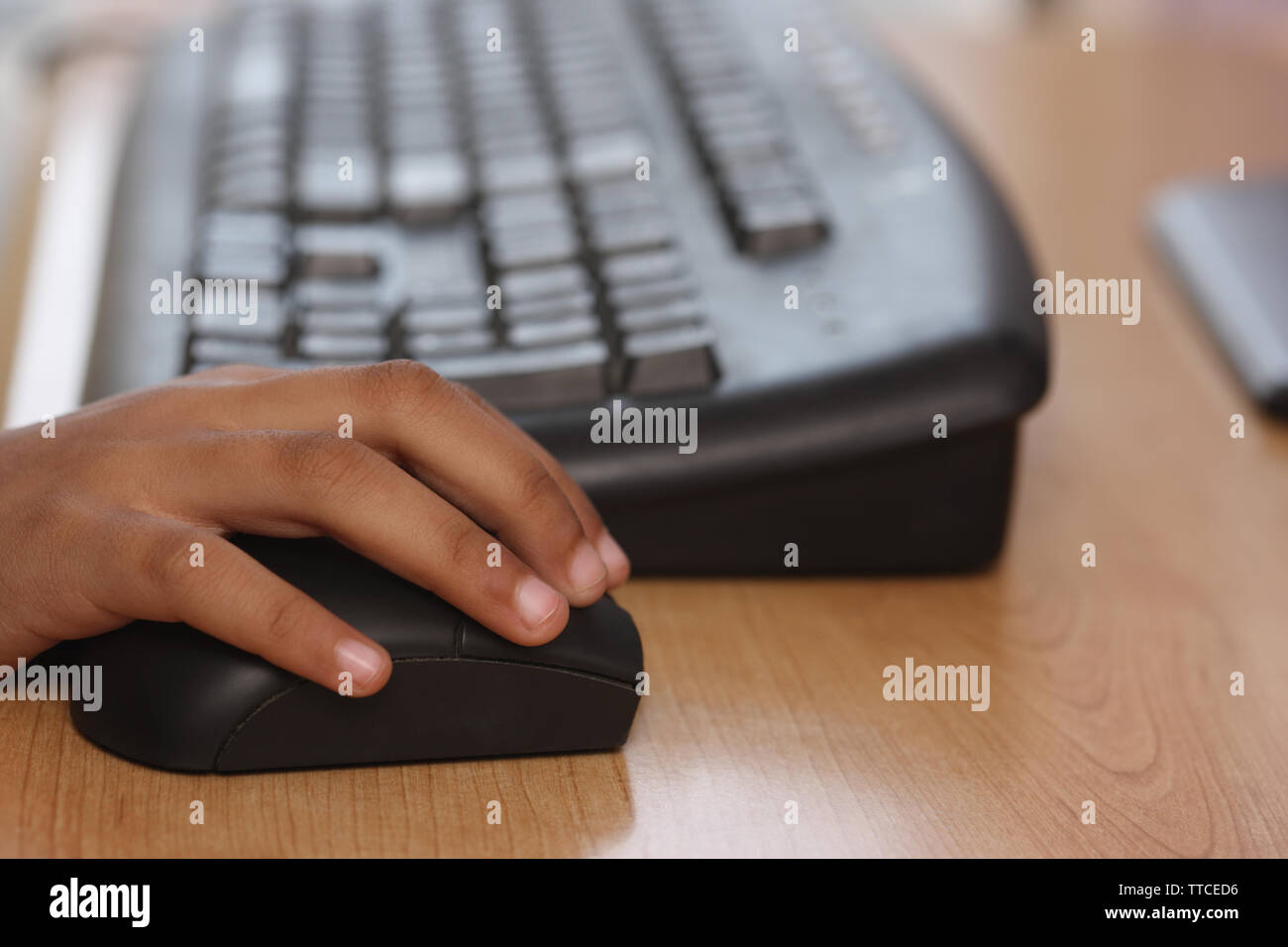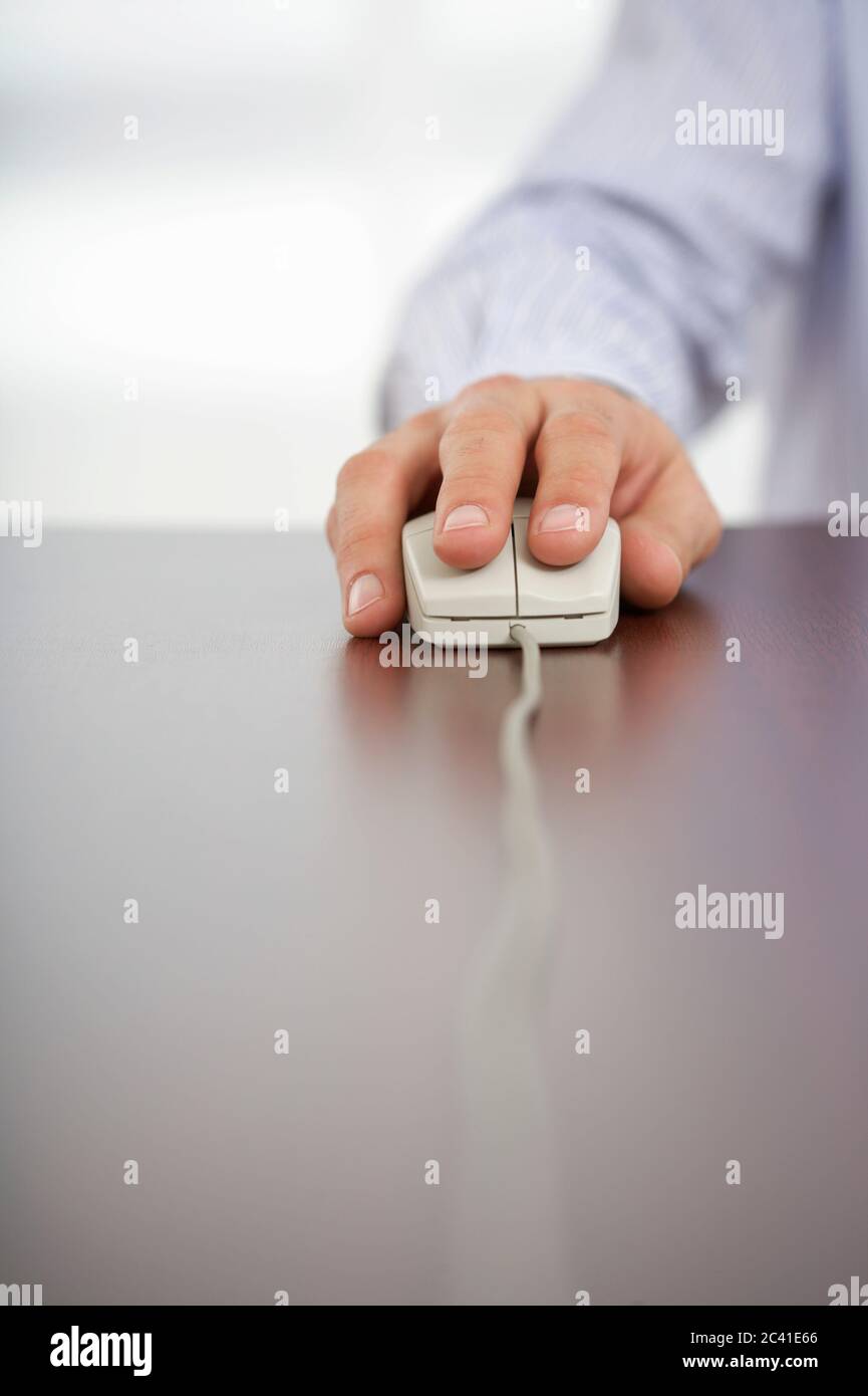 Hand using computer mouse at office closeup Stock Photo - Alamy