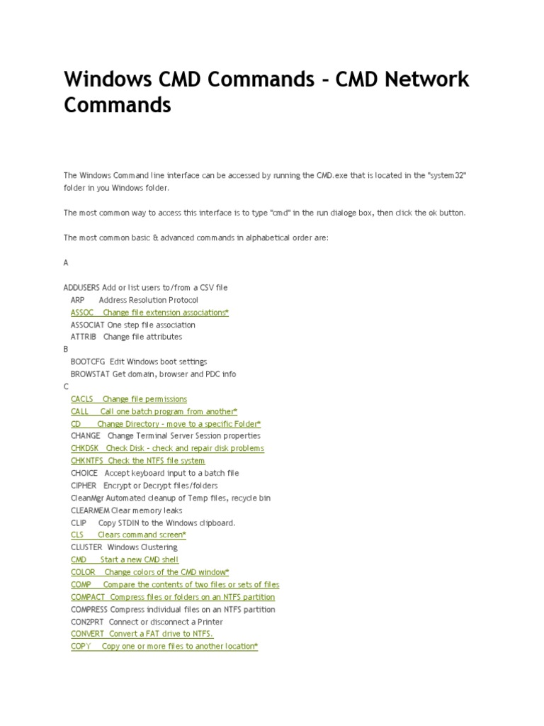 Windows CMD Commands - CMD Network Commands | PDF | Computer File ...