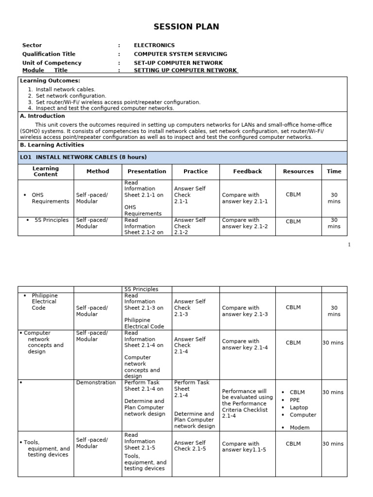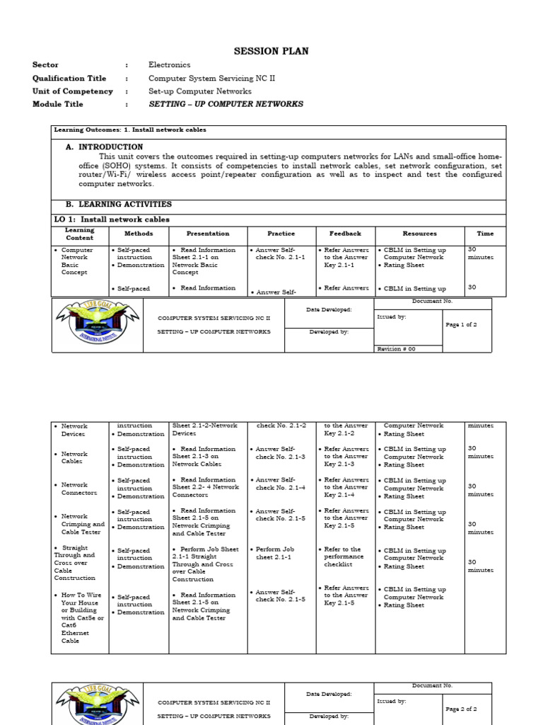 Setup Computer Networks NC II: Comprehensive Session Plan - Studocu