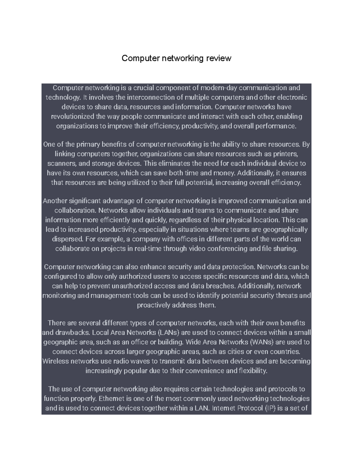 Computer networking review - Computer networking review Computer ...