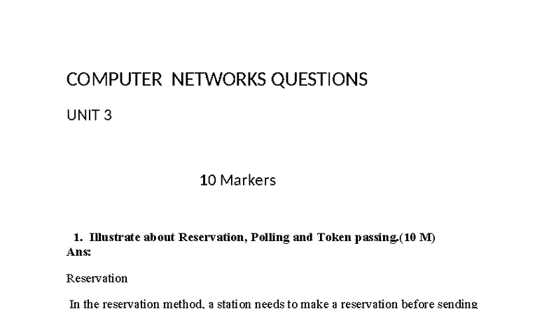 COMPUTER NETWORKS UNIT 3 10 MARKERS QUESTIONS & ANSWERS - Studocu