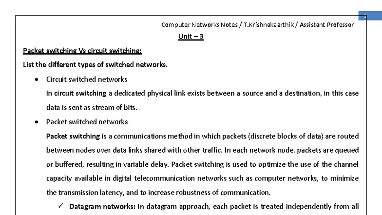 CN 1 Computer Networks Unit 3 Notes: Packet vs Circuit Switching - Studocu