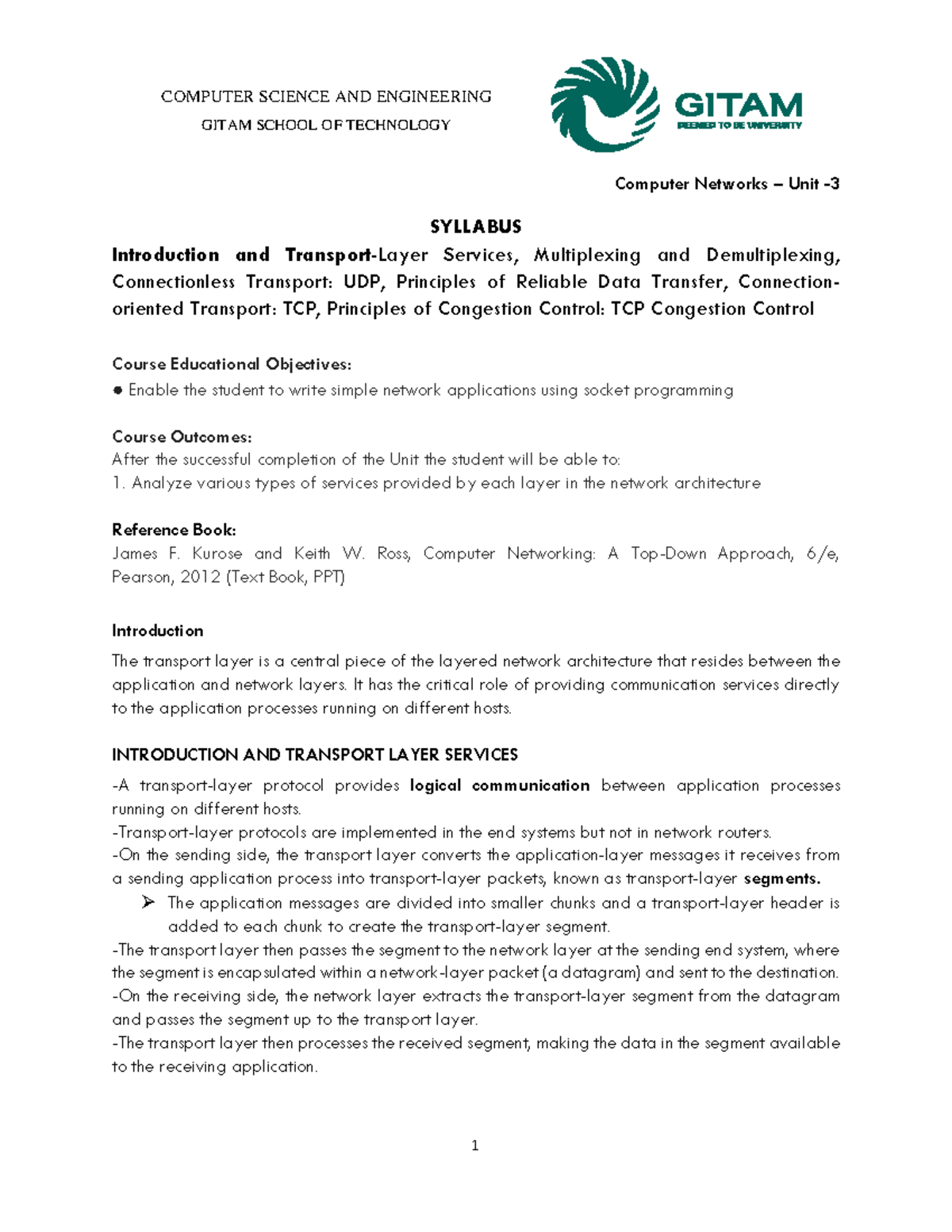 Computer Networks Unit (CN-Module-3) Study Notes: Transport Layer ...