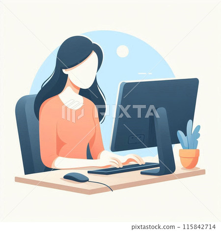 Illustration of a woman operating a computer at... - Stock Illustration ...