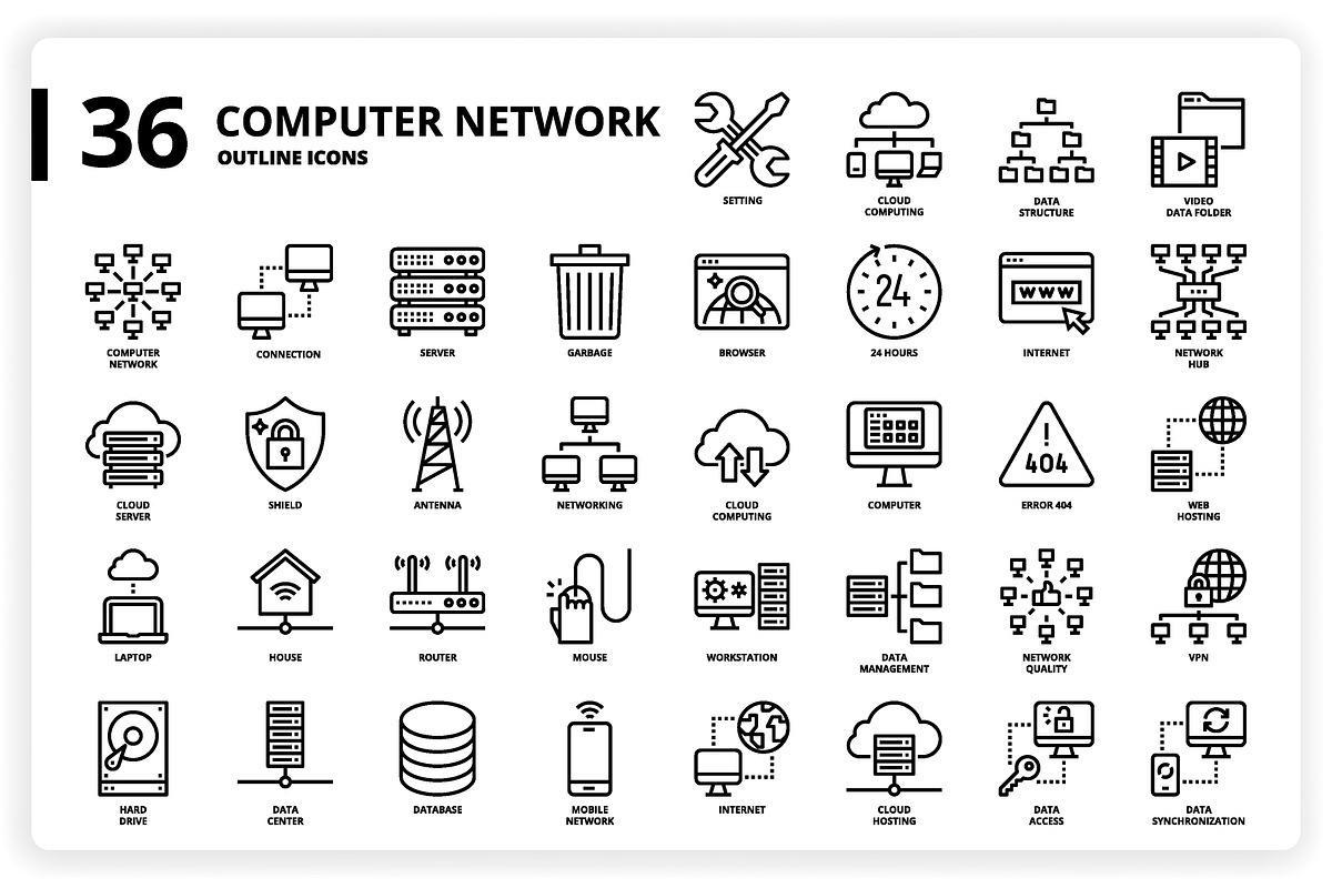 36 Computer Network Icons x 3 Styles | Pre-Designed Illustrator ...