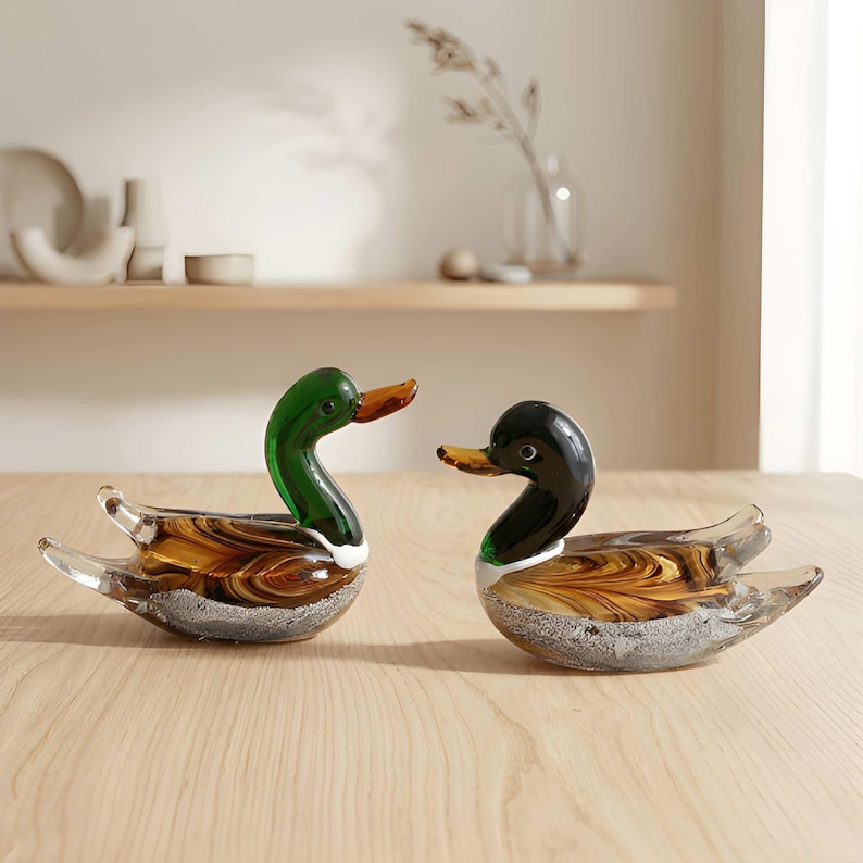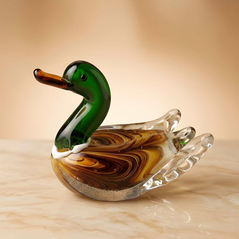 Glass Mallard Duck Figurine | Hand Blown Glass Duck Sculpture Ornament ...