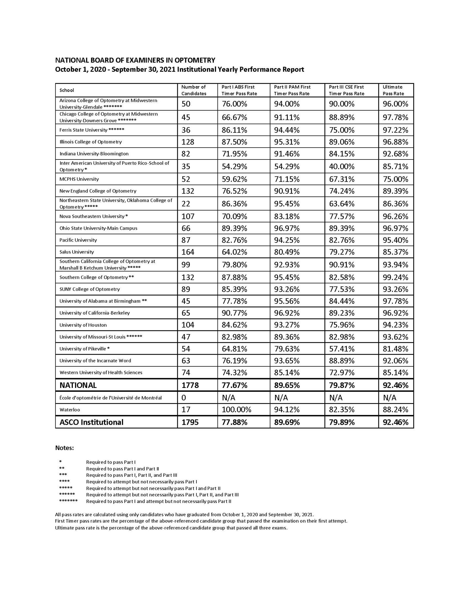 National Board of Examiners in Optometry Yearly Performance Report – ASCO