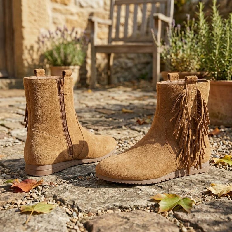 Western Tan Suede Fringe Short Booties | Women Boho Ankle Boots ...