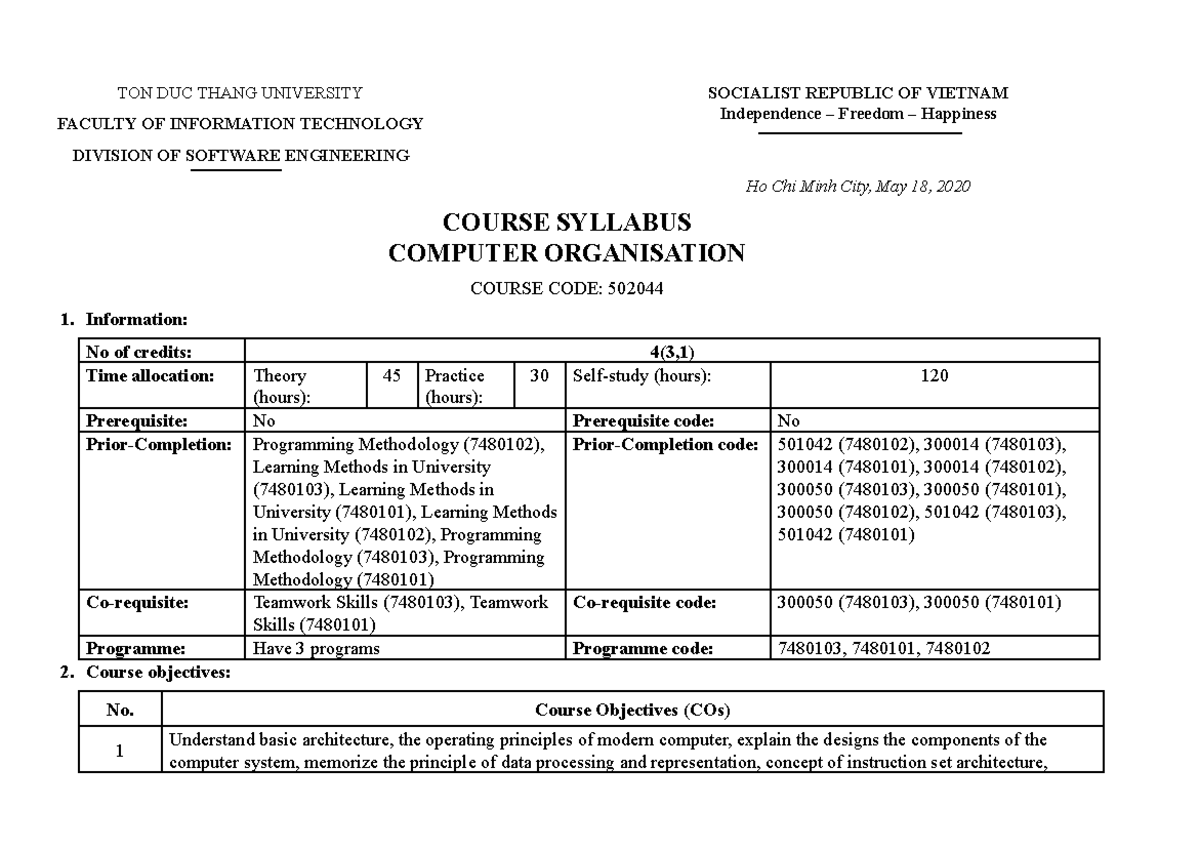 Basic Computer Organization Course Outline - 1 Course Outline for 2021 ...