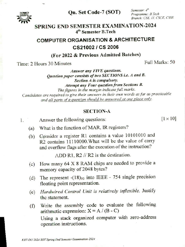 IT 217 : Computer Organization and Architecture | Notes | BIM, BSc.CSIT ...