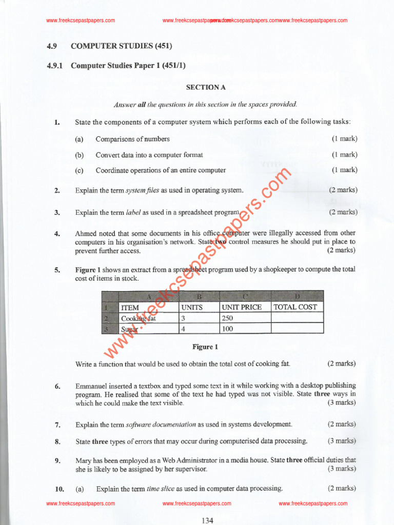 Computer Studies Exam Questions Guide | PDF | Computer Data Storage ...