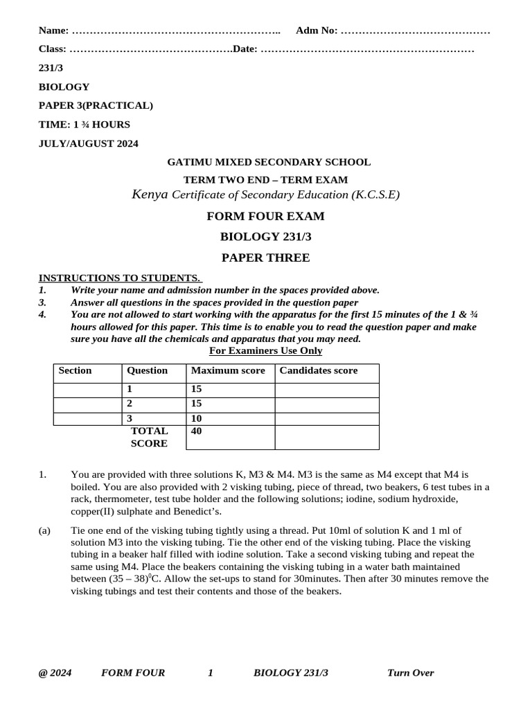 Biology pp3 Questions | PDF