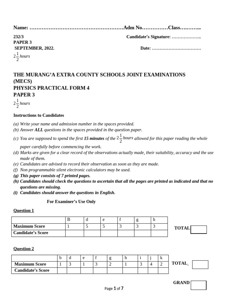 KCSE 2020 PHYSICS PP1 PP2 PP3 QUESTIONS | PDF