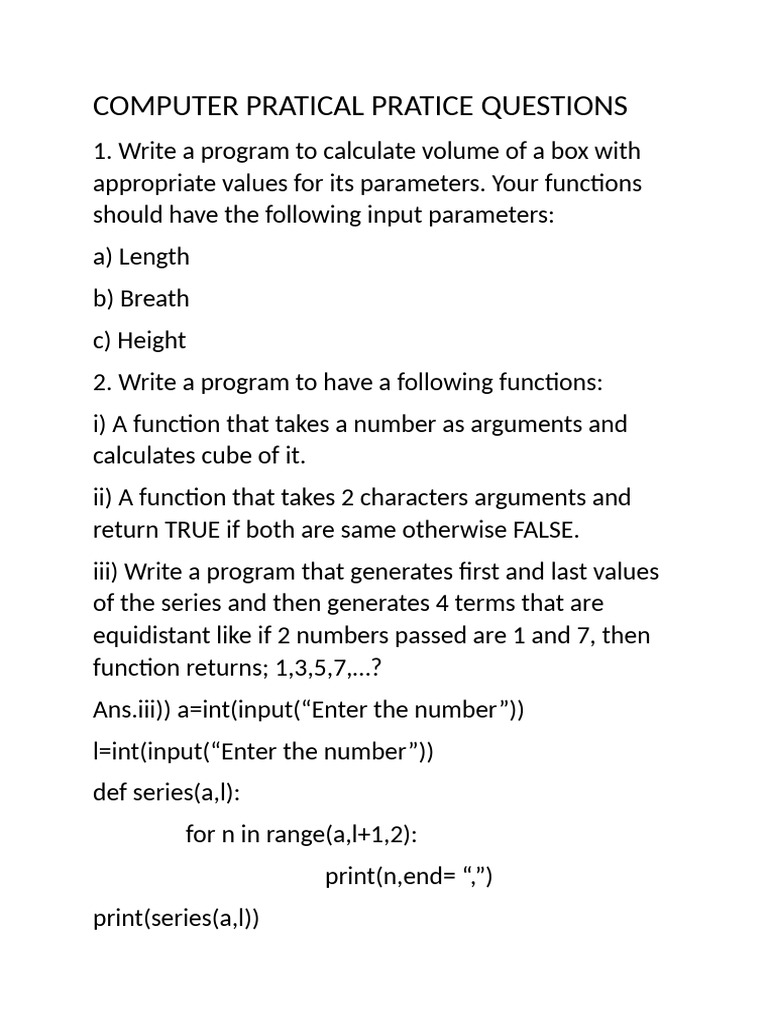 Computer Pratical Pratice Questions | PDF