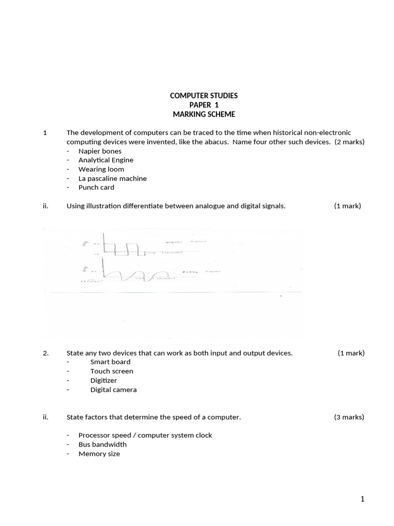Revision Paper FORM ONE - Computer Studies - Studocu