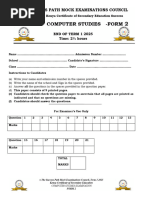 Form 3 Computer Studies Term 1 Opener Exam 2025
