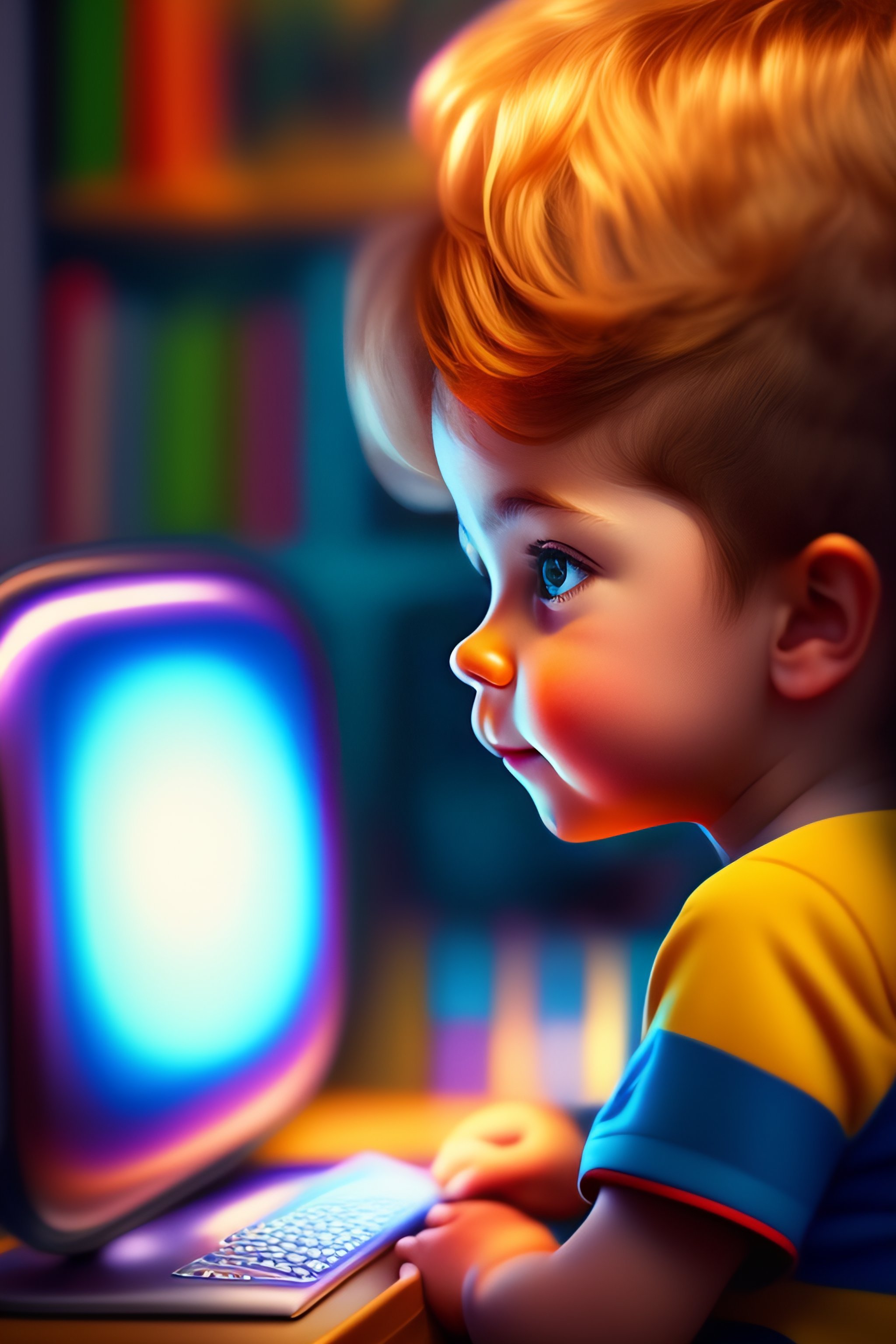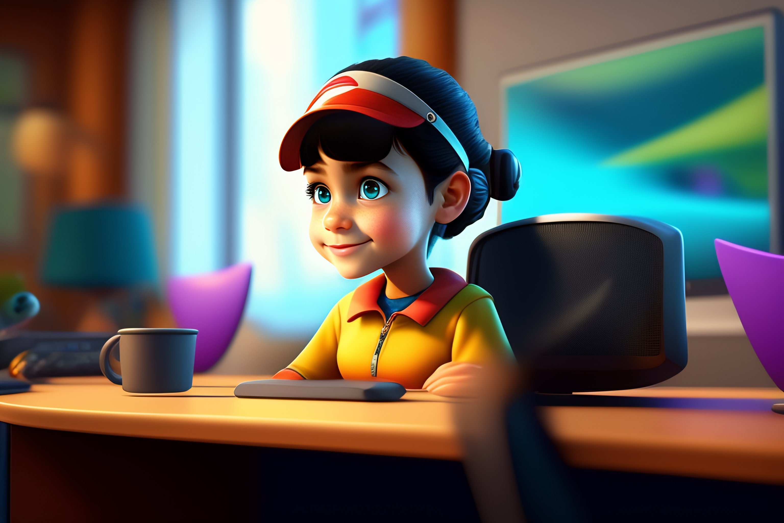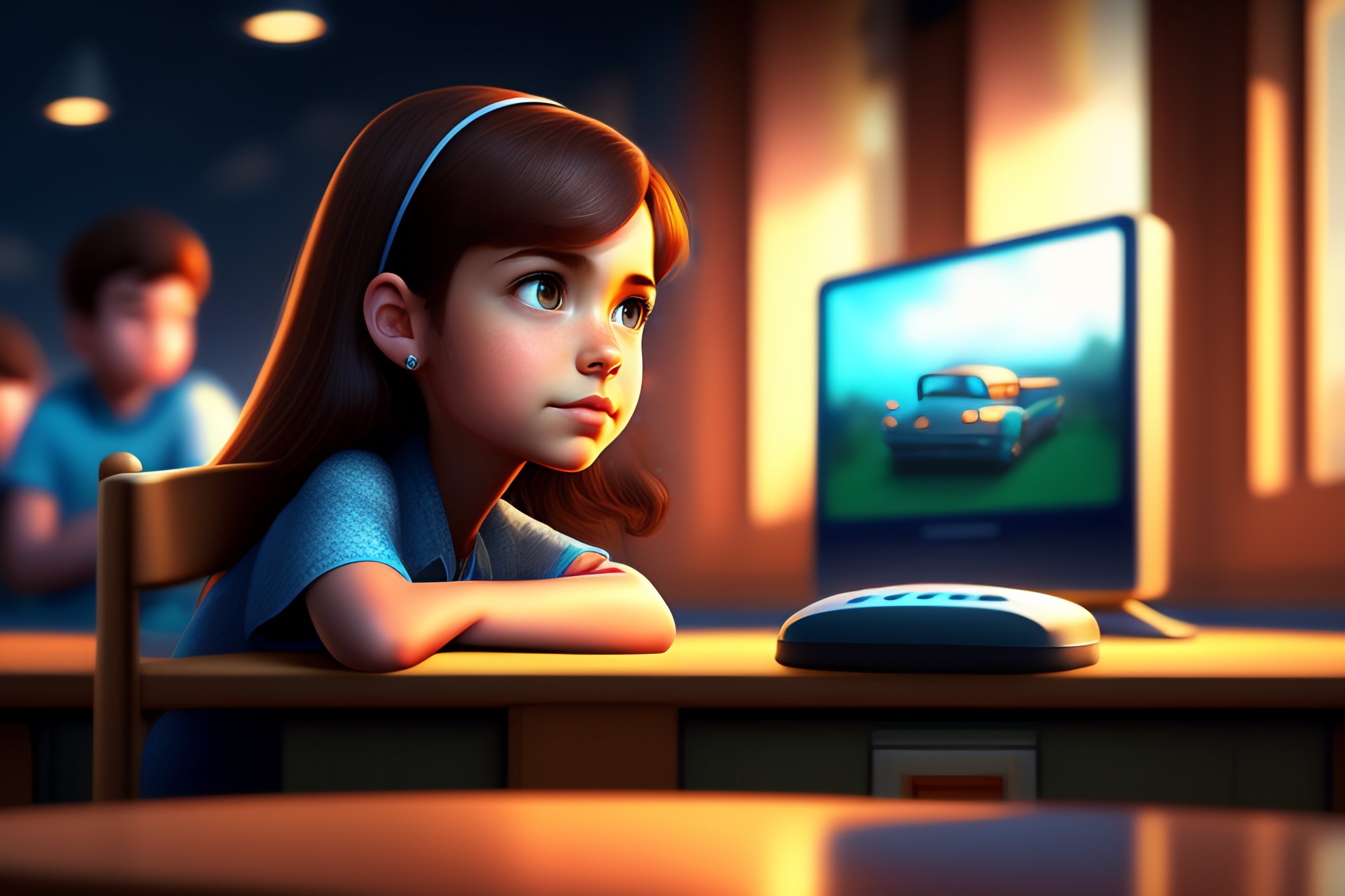 Lexica - Bright Pixar art for a girl playing computer games, where cute ...