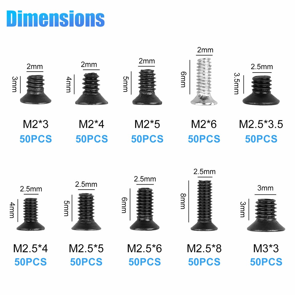 Laptop Computer Screws Kit, 500pcs Micro Screws M2.5 M3 Flat Head ...