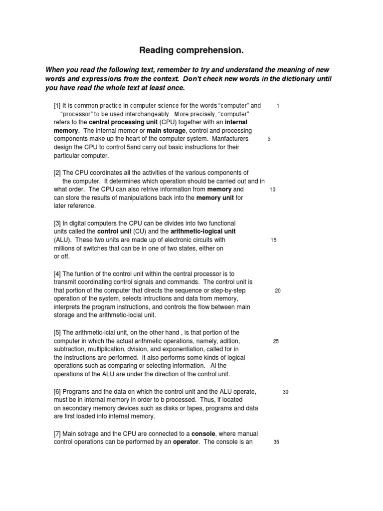 Reading Comprehension Cpu | PDF | Central Processing Unit | Computer ...