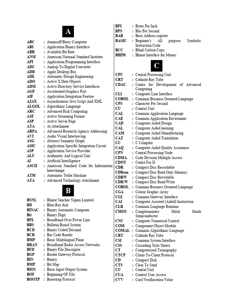 Computer important Abbreviations | PDF | Byte | Read Only Memory
