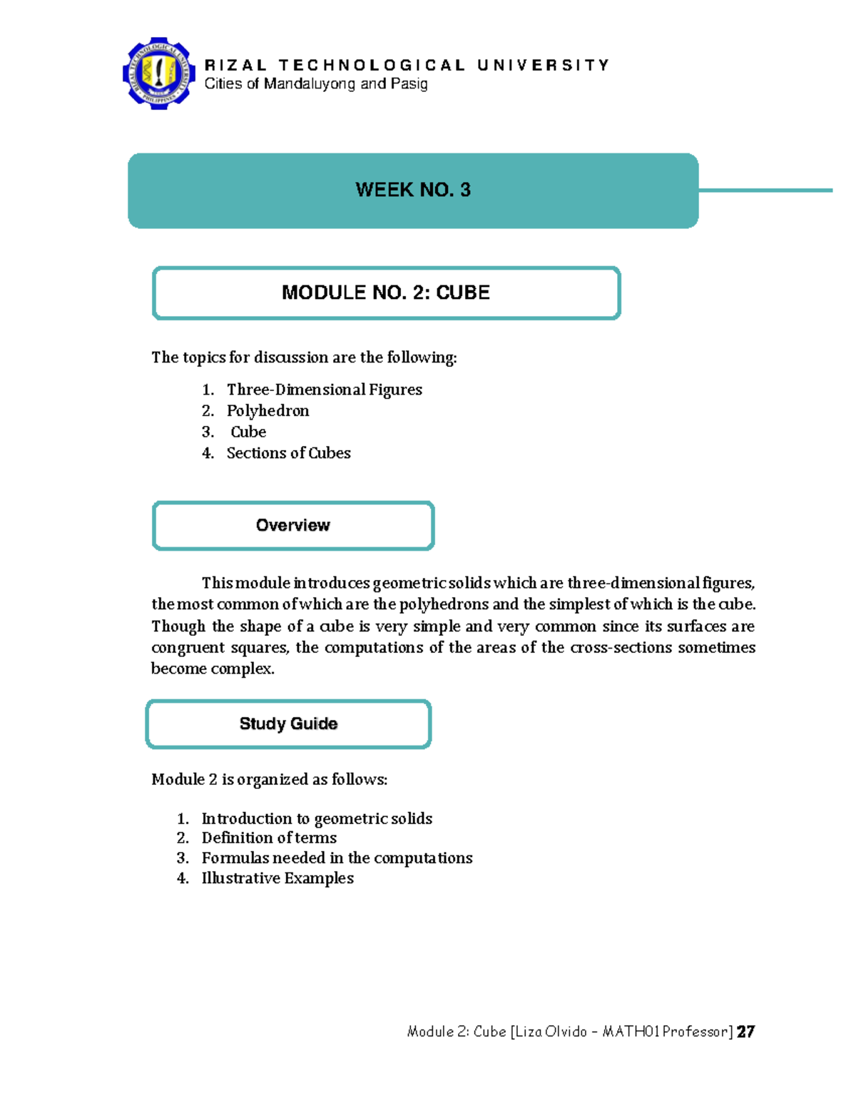 MATH01 Module 2 Cube - Cities of Mandaluyong and Pasig The topics for ...