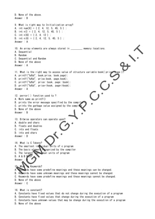 SOLUTION: C programming mcq questions and answers part1 by shailendra ...