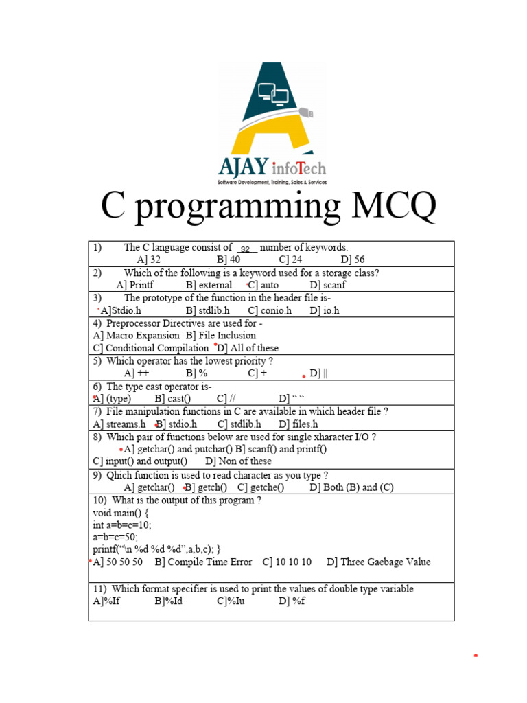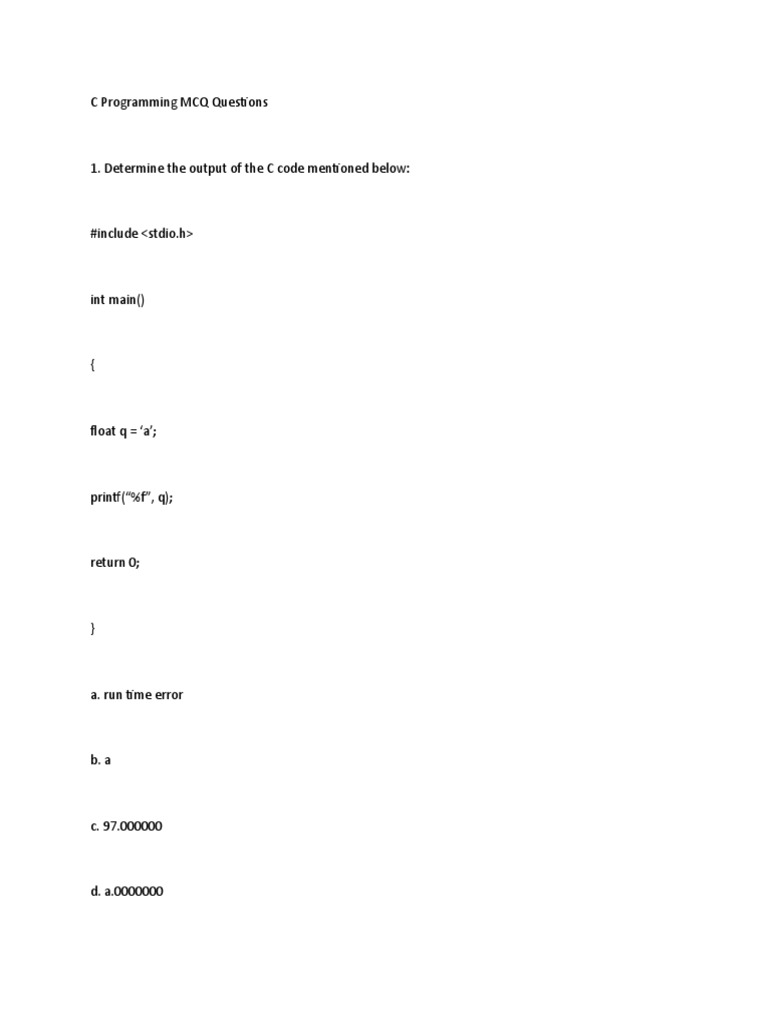 C Programming MCQ Questions with Answers | C Language MCQ pdf ...