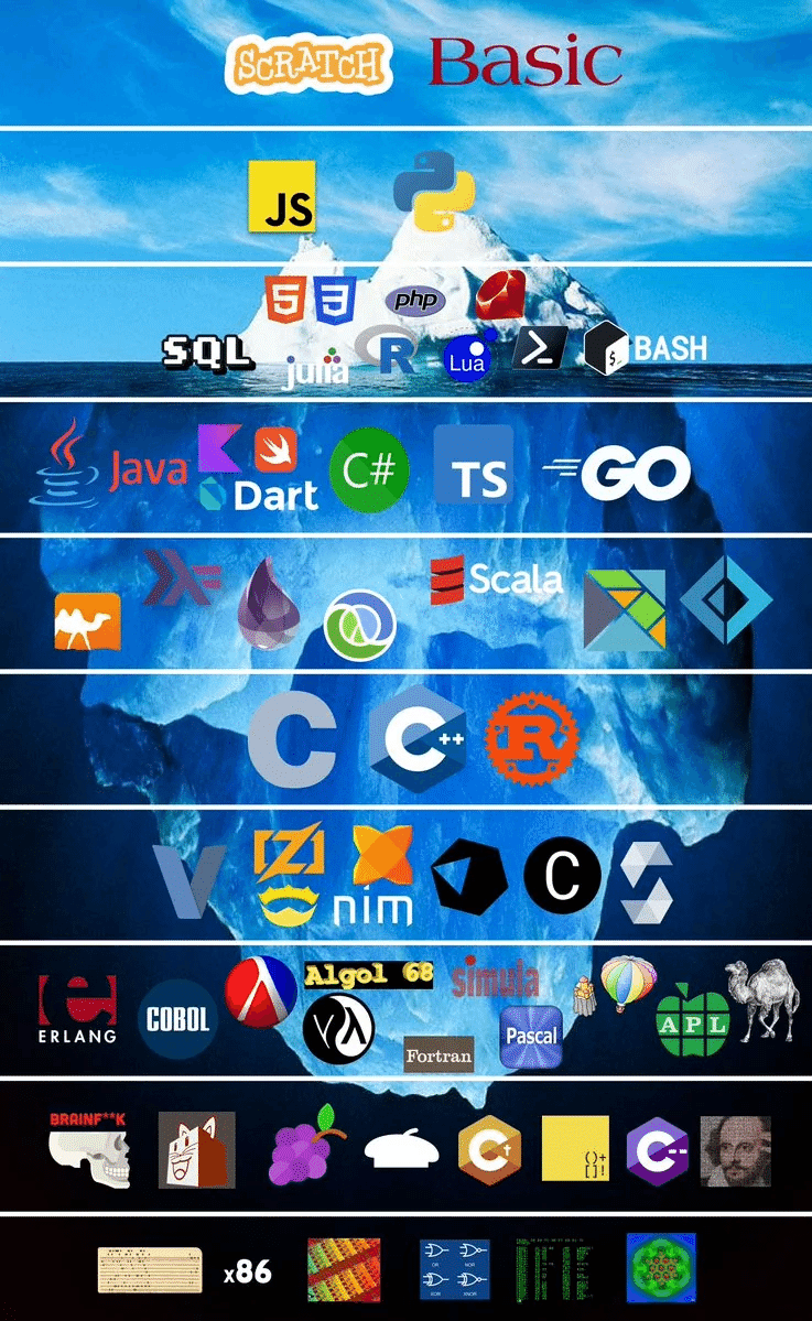 Programming Languages Iceberg: Developer Roadmap Every Beginner Needs ...