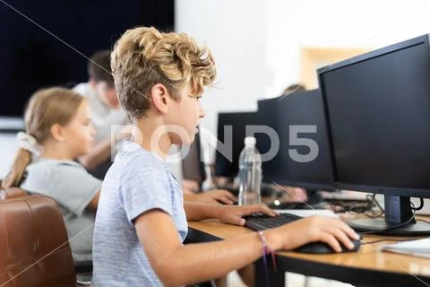 Elementary School Computer Science Classroom: Smart Little Schoolboy ...