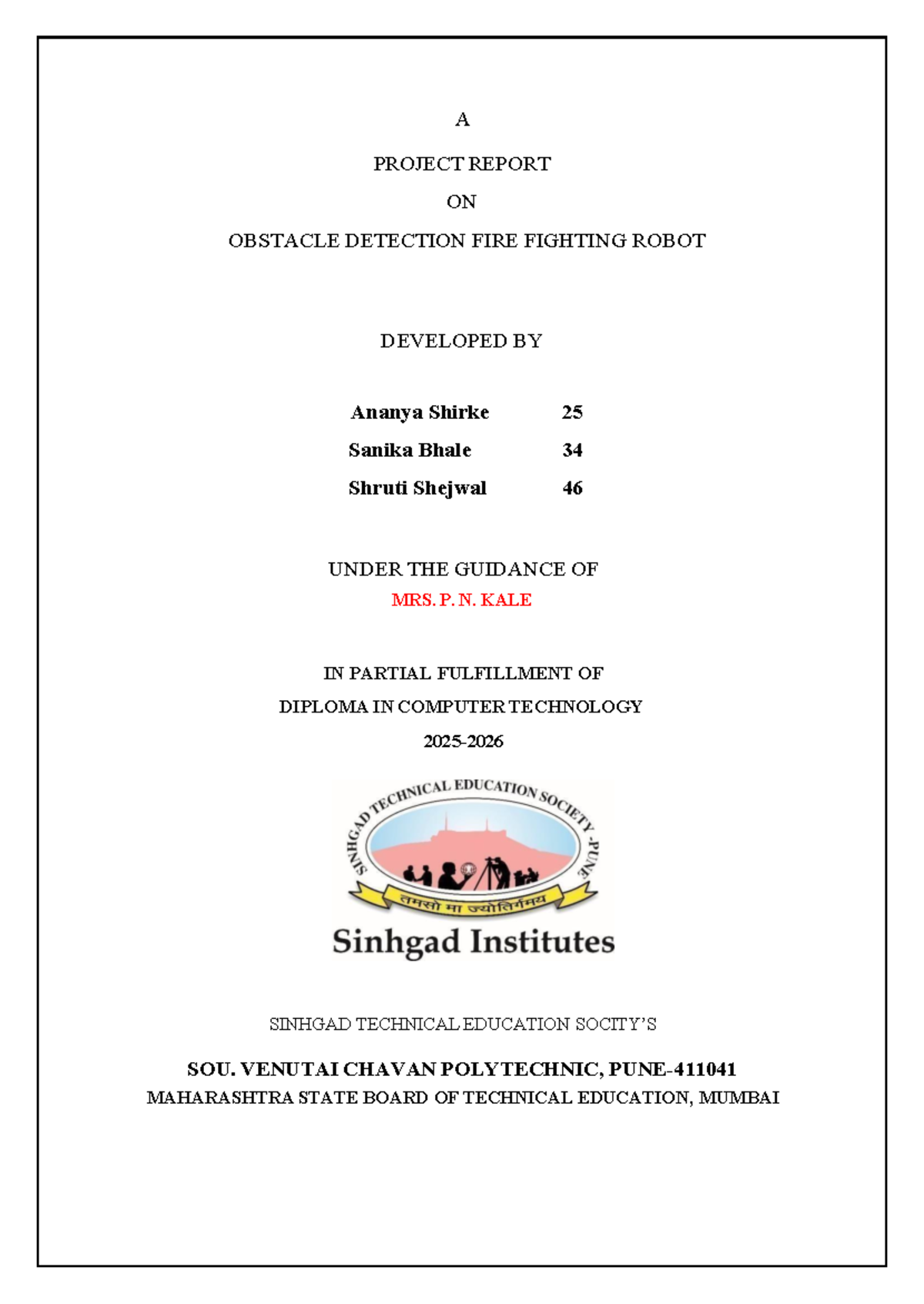 Obstacle Detection Fire Fighting Robot Project Report - Diploma in ...