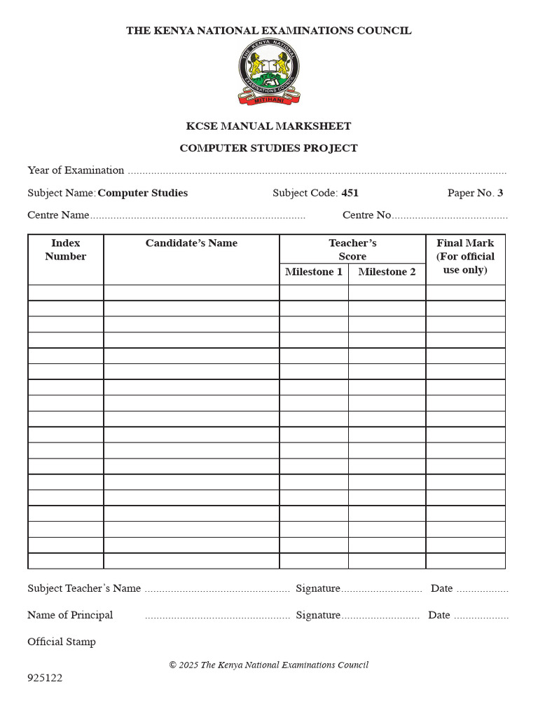 KCSE 2026 Computer Studies Project Guide | Milestone 1 and Milestone 2 ...