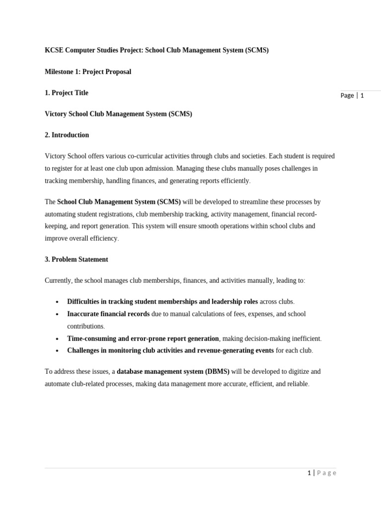 KCSE COMPUTER STUDIES PROJECT GUIDE -MILESTONE 2 (What is expected in ...