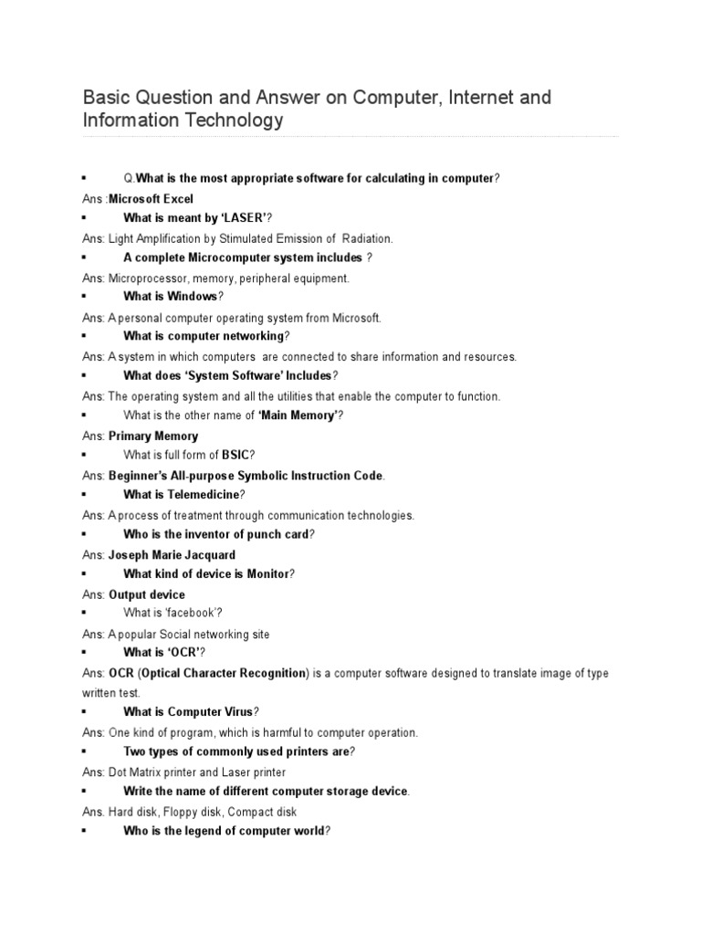 Computer and basic questions and answers – Artofit